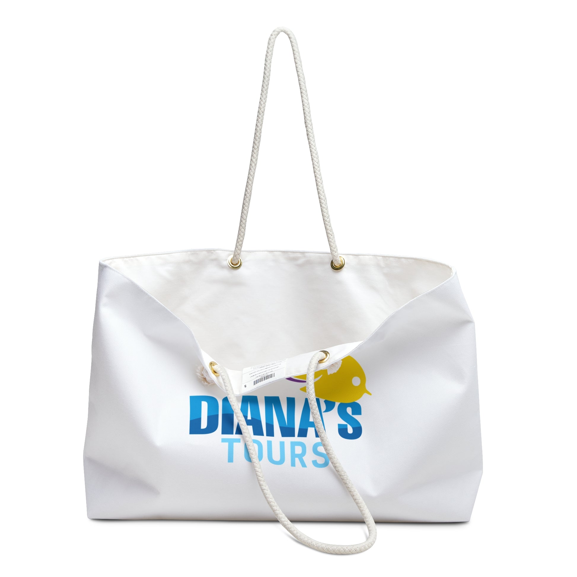 Our oversized Weekender Tote is perfect for your weekend at the beach or in town. The wide-mouthed, durable bag holds a generous amount of personal items and is easily held by its thick rope handles.